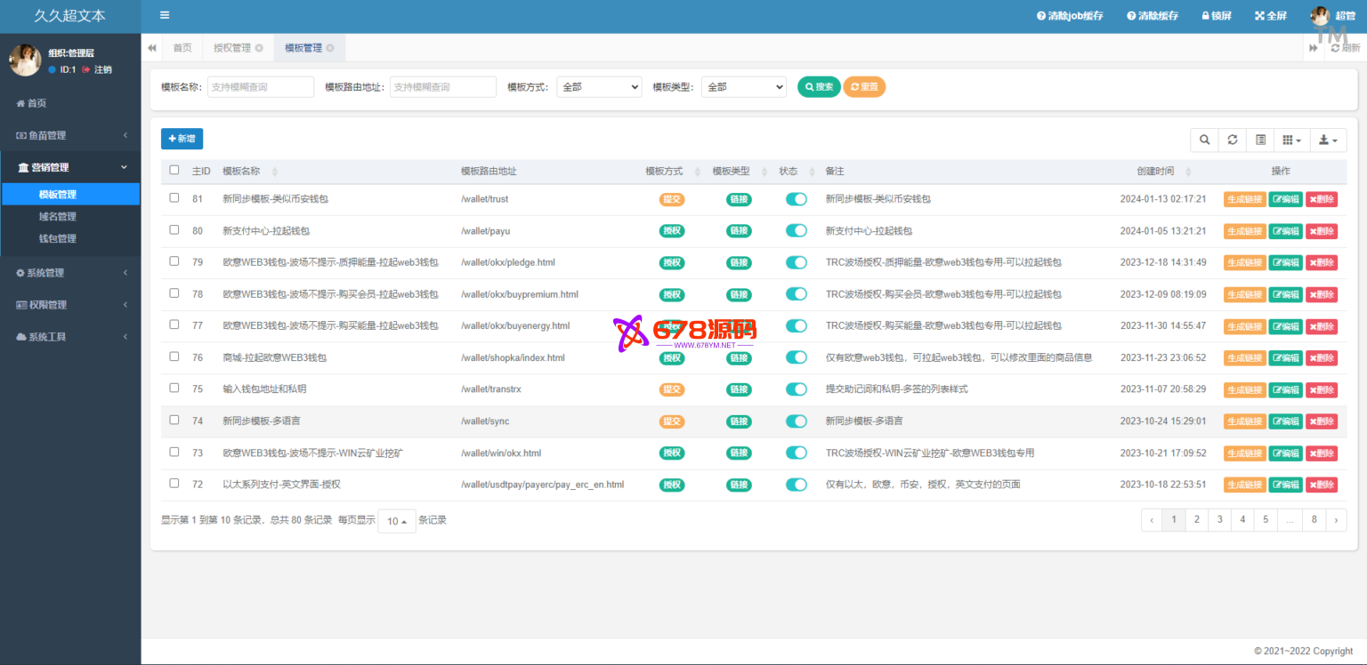 四链授权+多签盗U/带TG机器人通知/80套模板/内置IM假钱包