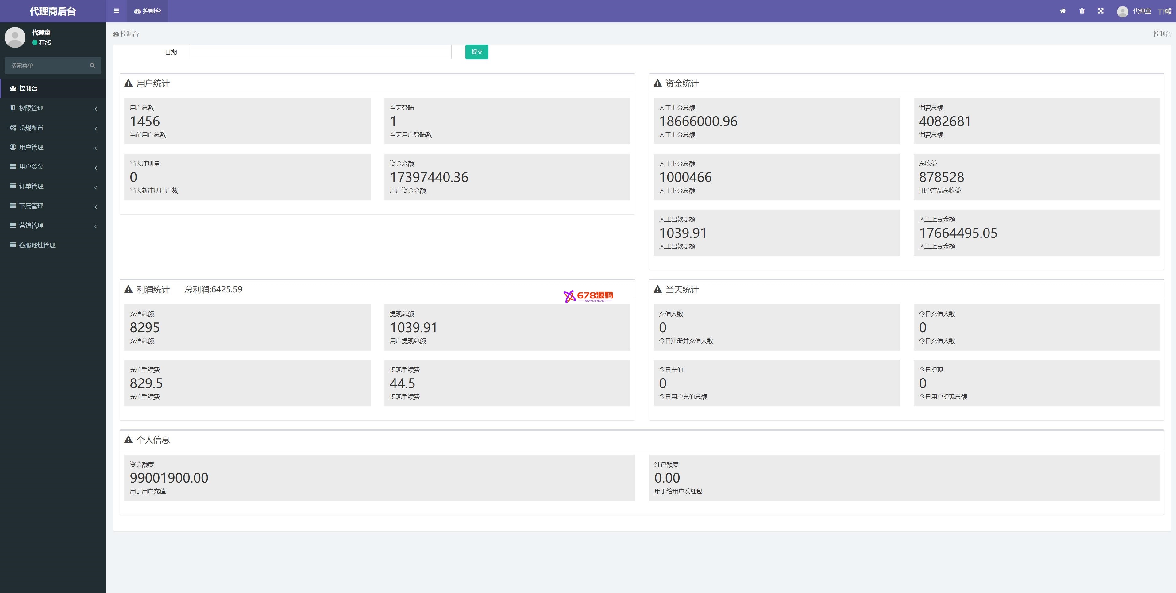 此系统使用FastAdmin框架全新开发,单独的代理后台