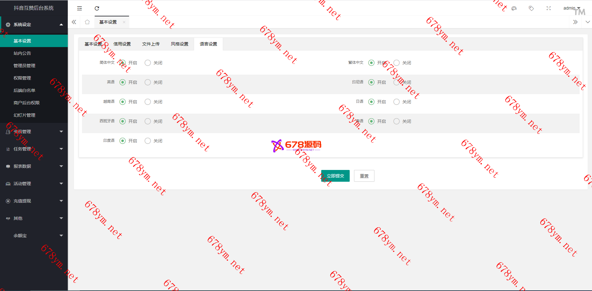 后台:可自定义设置自己的网站域名,客服qq,app名字等等、余额宝理财,财务明细