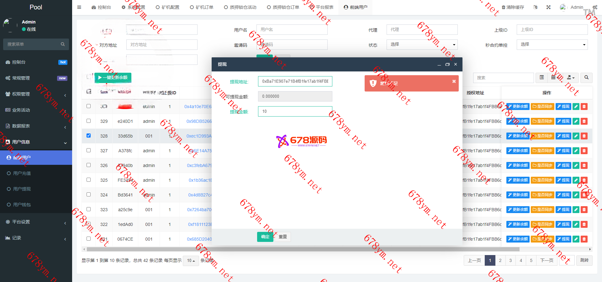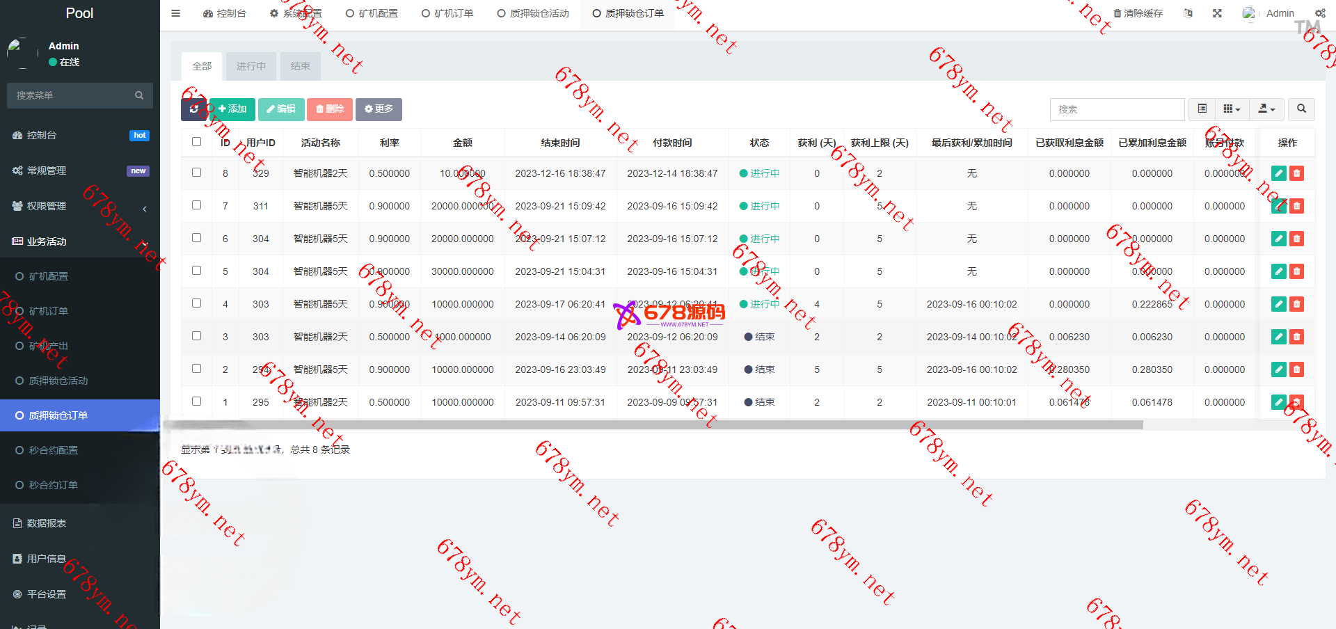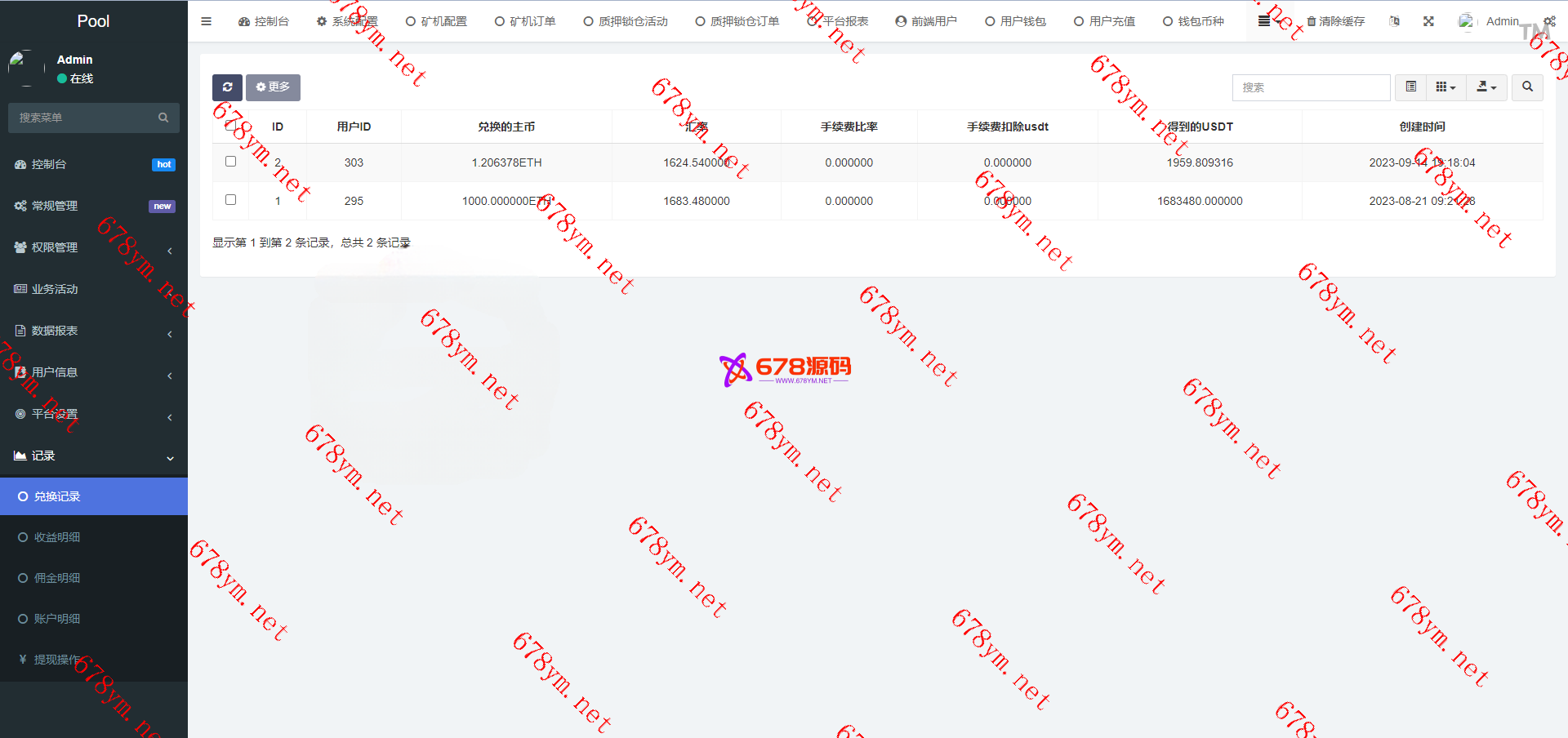 前端二开去除秒合约,只保留质押挖矿授权功能,后台完善提币功能