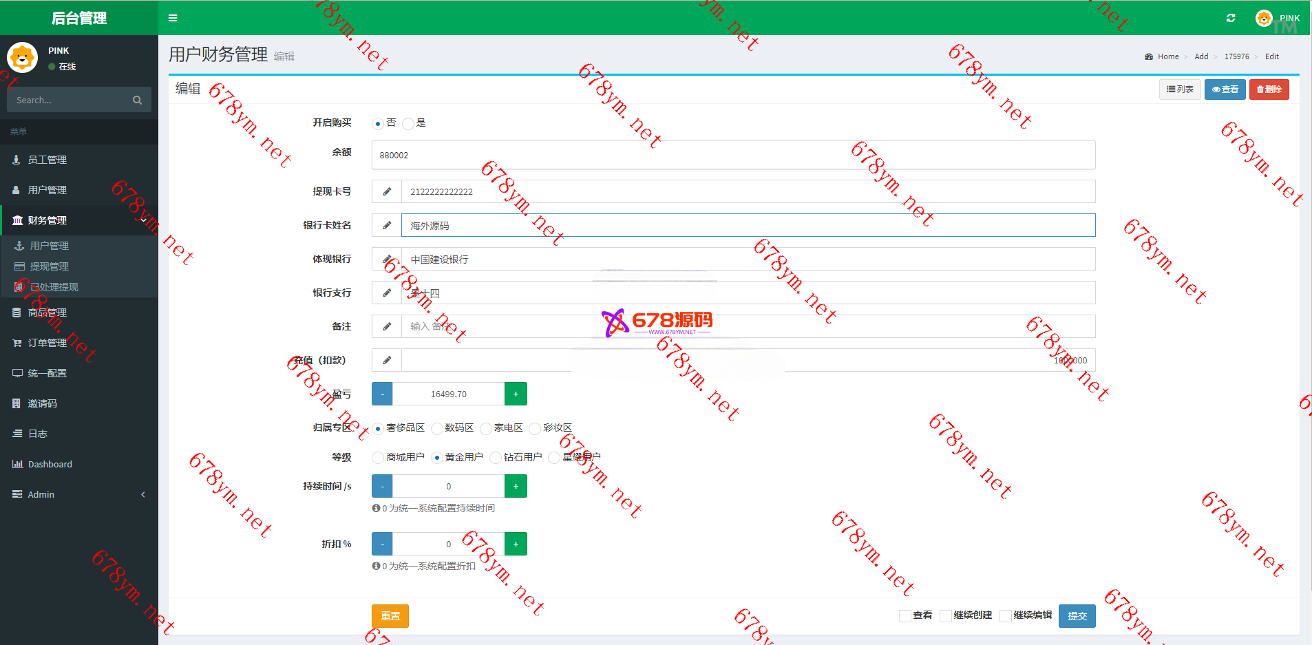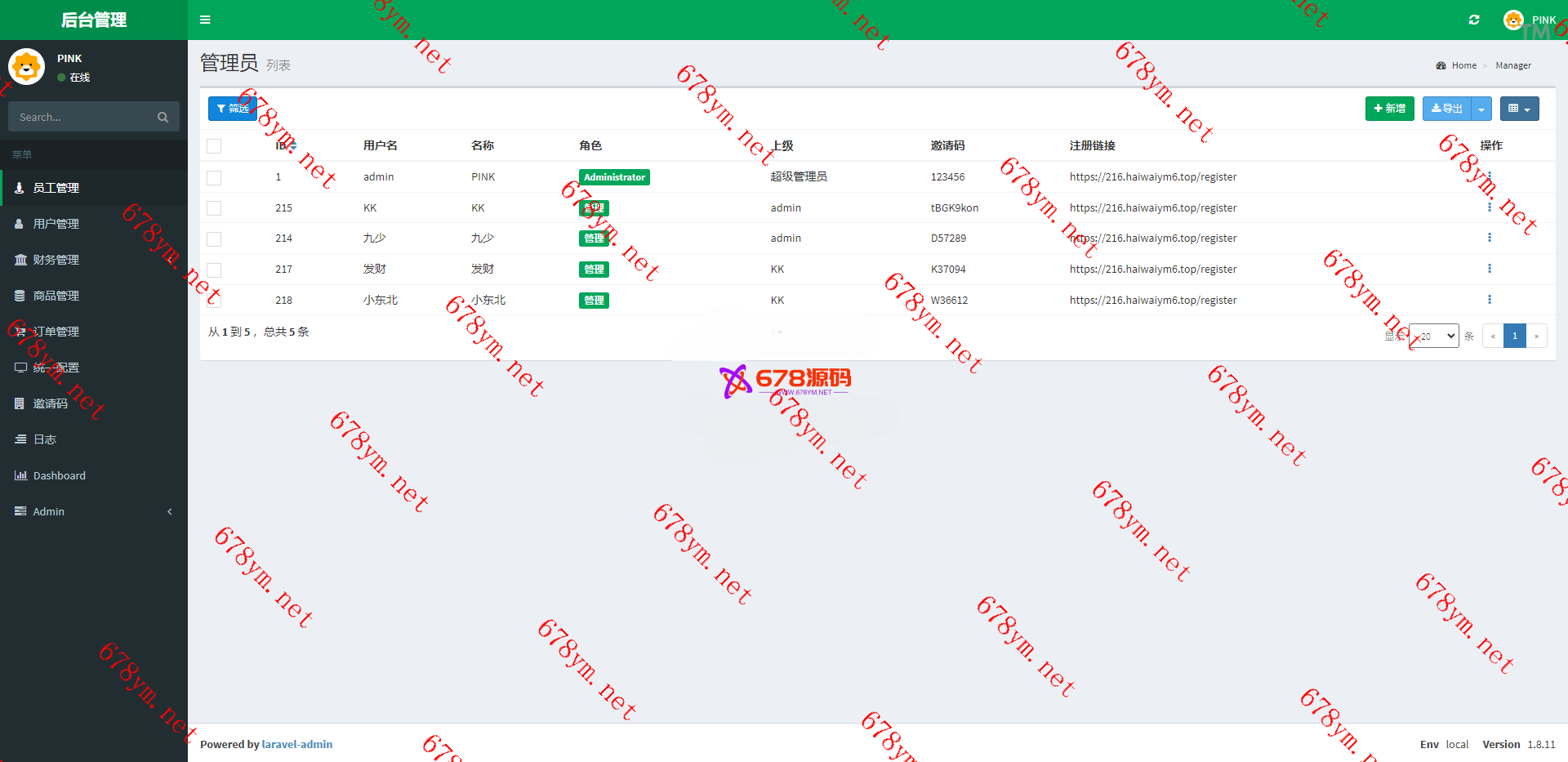 系统带权限代理后台,可单独生成邀请码,后台可设置购买权限、返现时间、持续购买