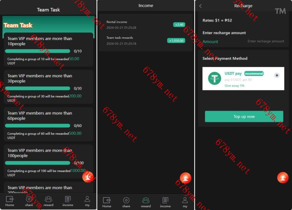有拉新奖励 完成任务奖励USDT 带有质押生息后台可以设置时间