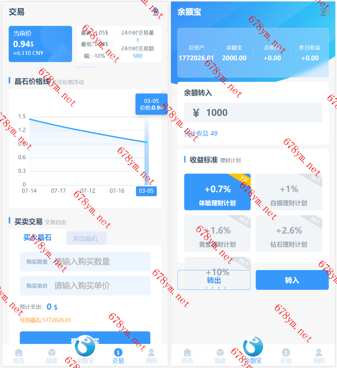 区块链云算力矿机/余额宝理财/虚拟币交易市场
