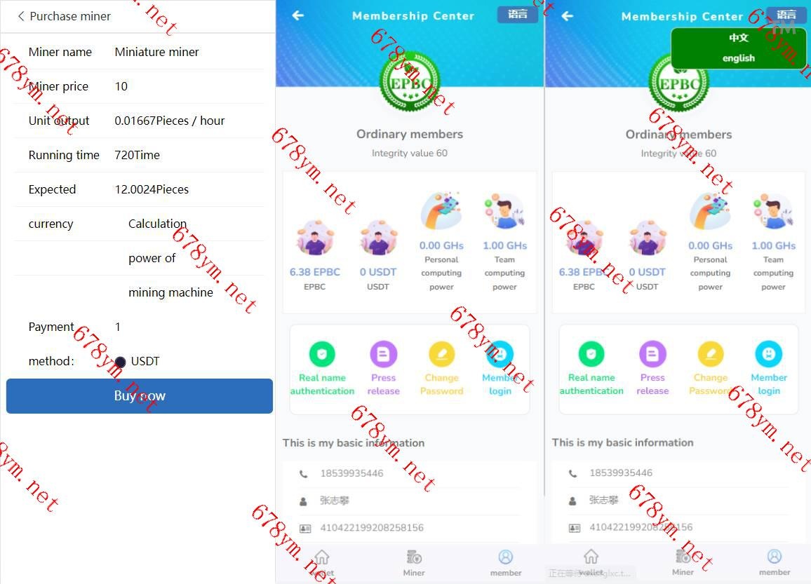 双语言矿机系统/云矿机算力/区块链矿机