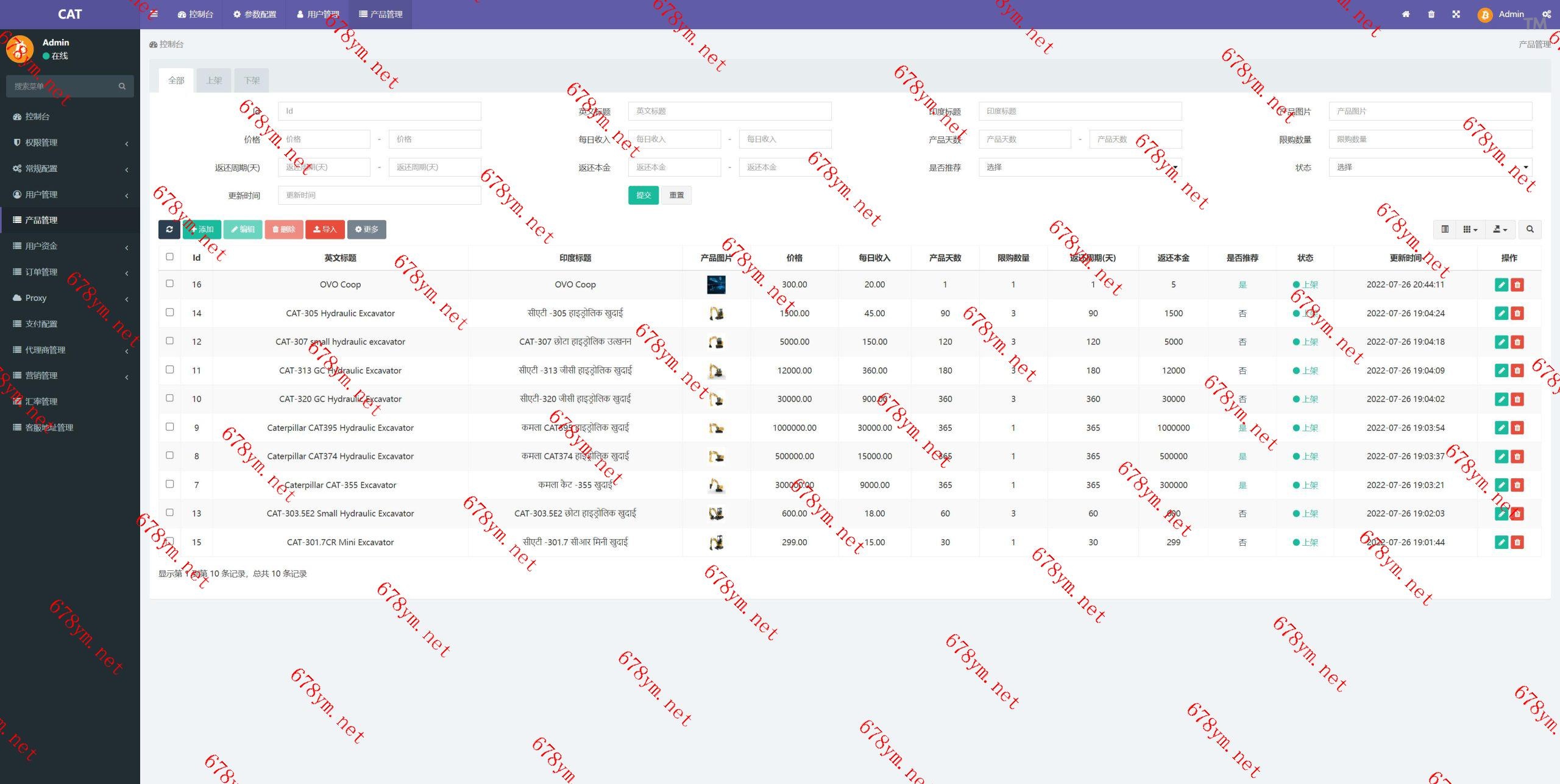 运营版多语种印度矿机系统/投资理财系统/前后端分离/单独代理后台