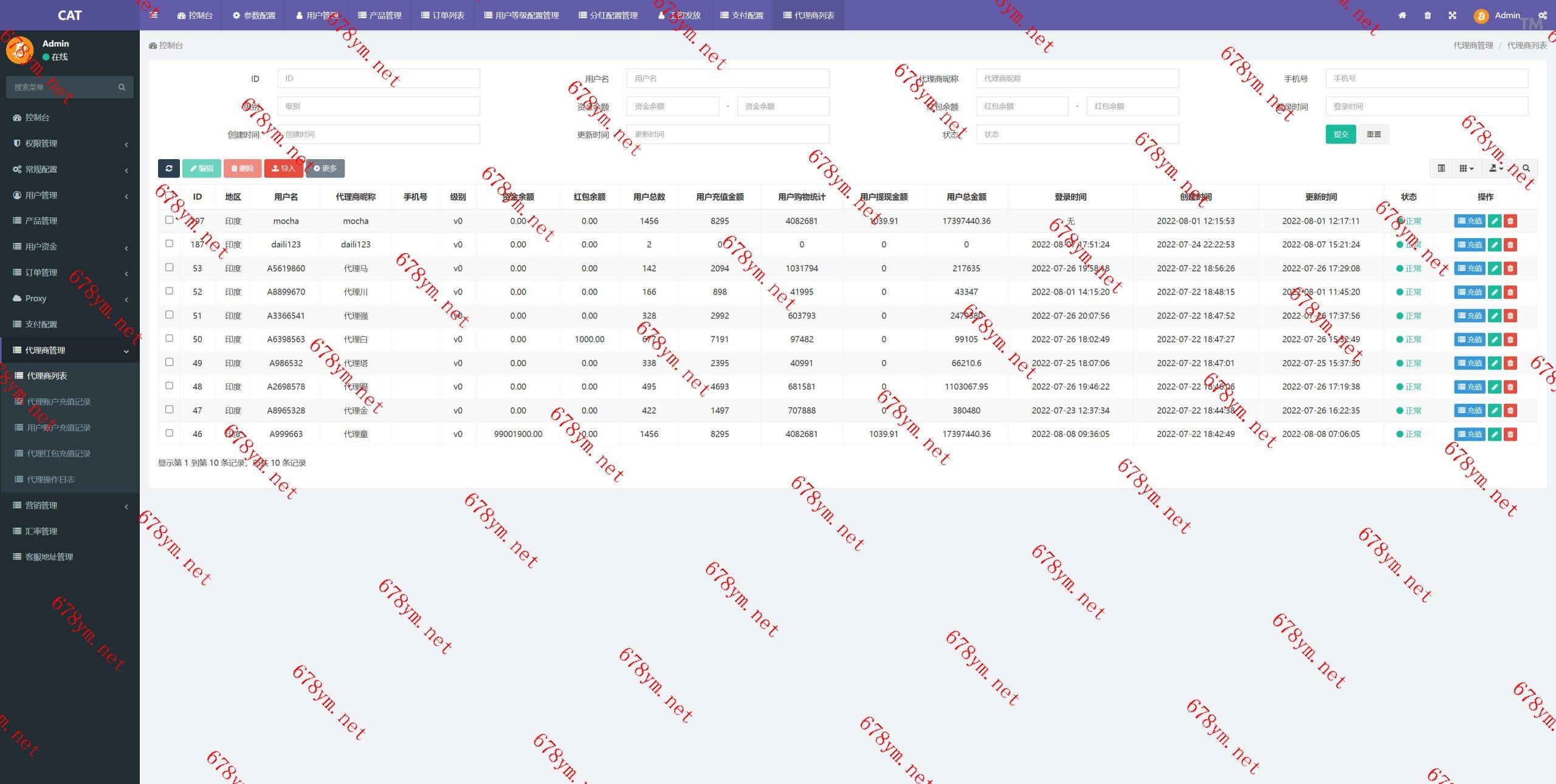 此系统使用FastAdmin框架全新开发,单独的代理后台