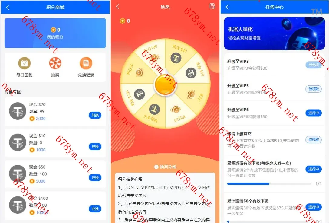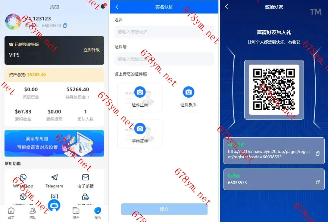 2、根据法规需求,仅支持三级分销机制,用户邀请朋友能获得对应百分比奖励
