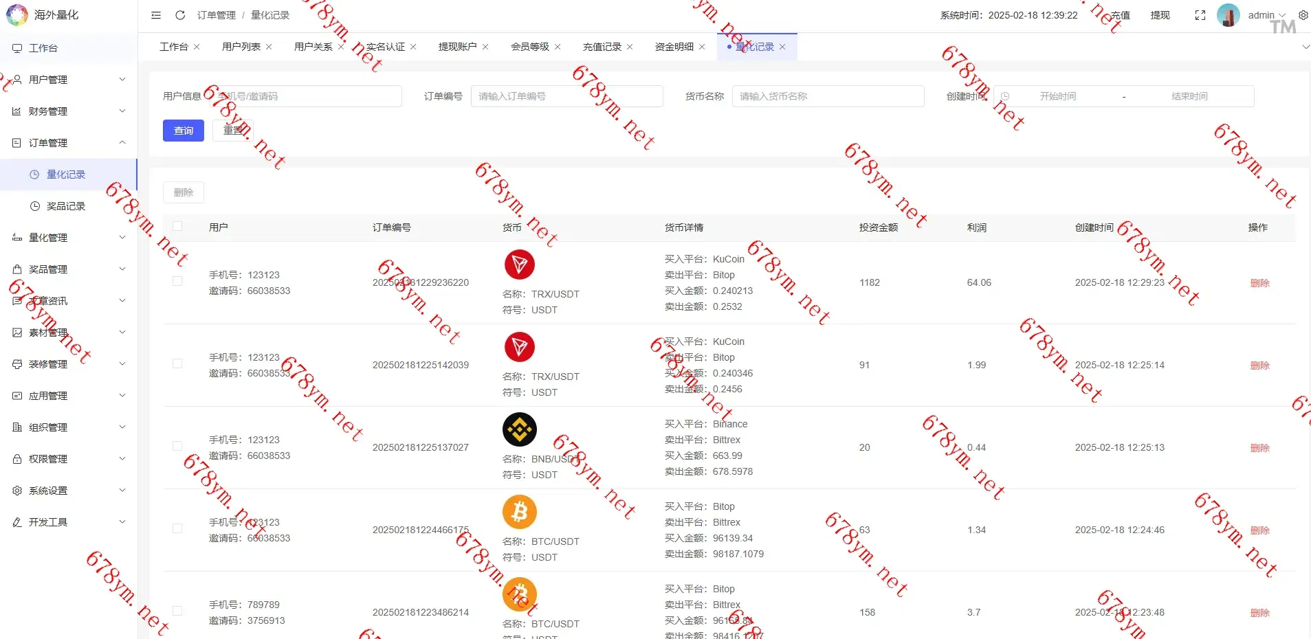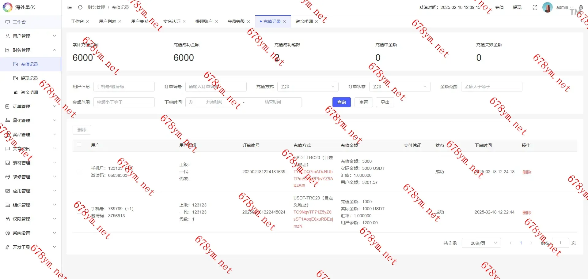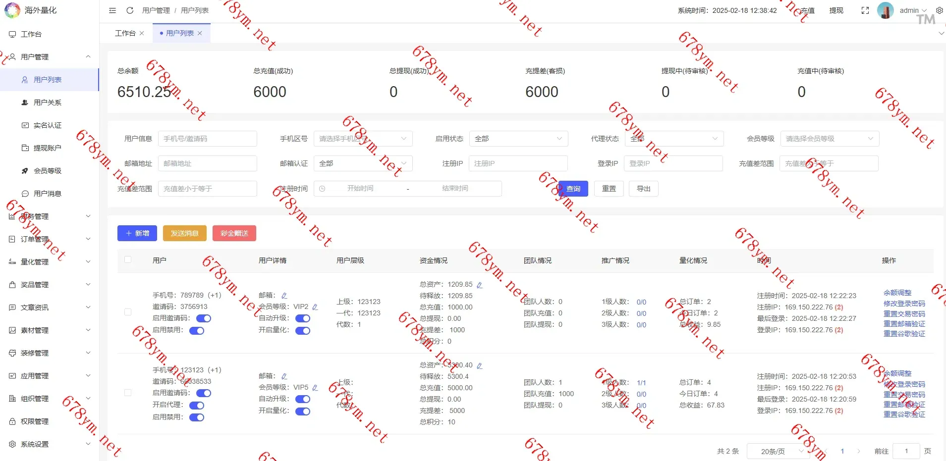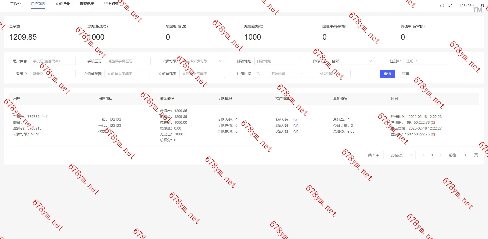 19、代理线功能,后端开启用户为代理,即可登录代理端查看代理下级用户情况