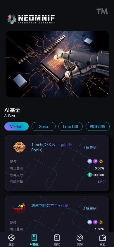 提供多种AI基金项目选择(如 Yieldott、Xoso、Loto188 等)