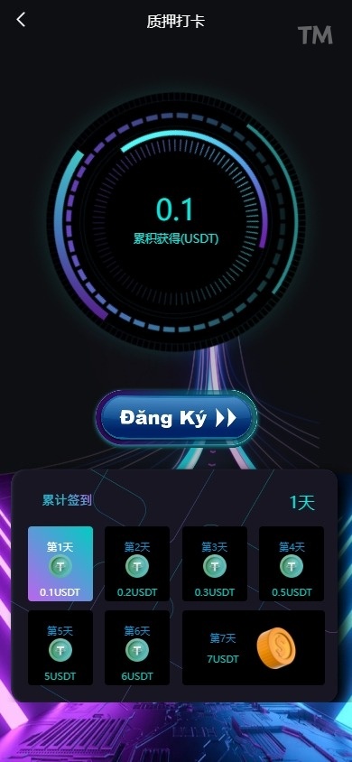 质押打卡:连续签到可获得额外 USDT 奖励(最高7天7USDT)