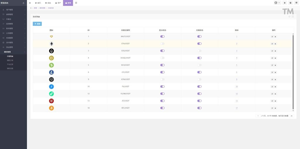 支持主流加密货币交易对(BTC/USDT、ETH/USDT等)