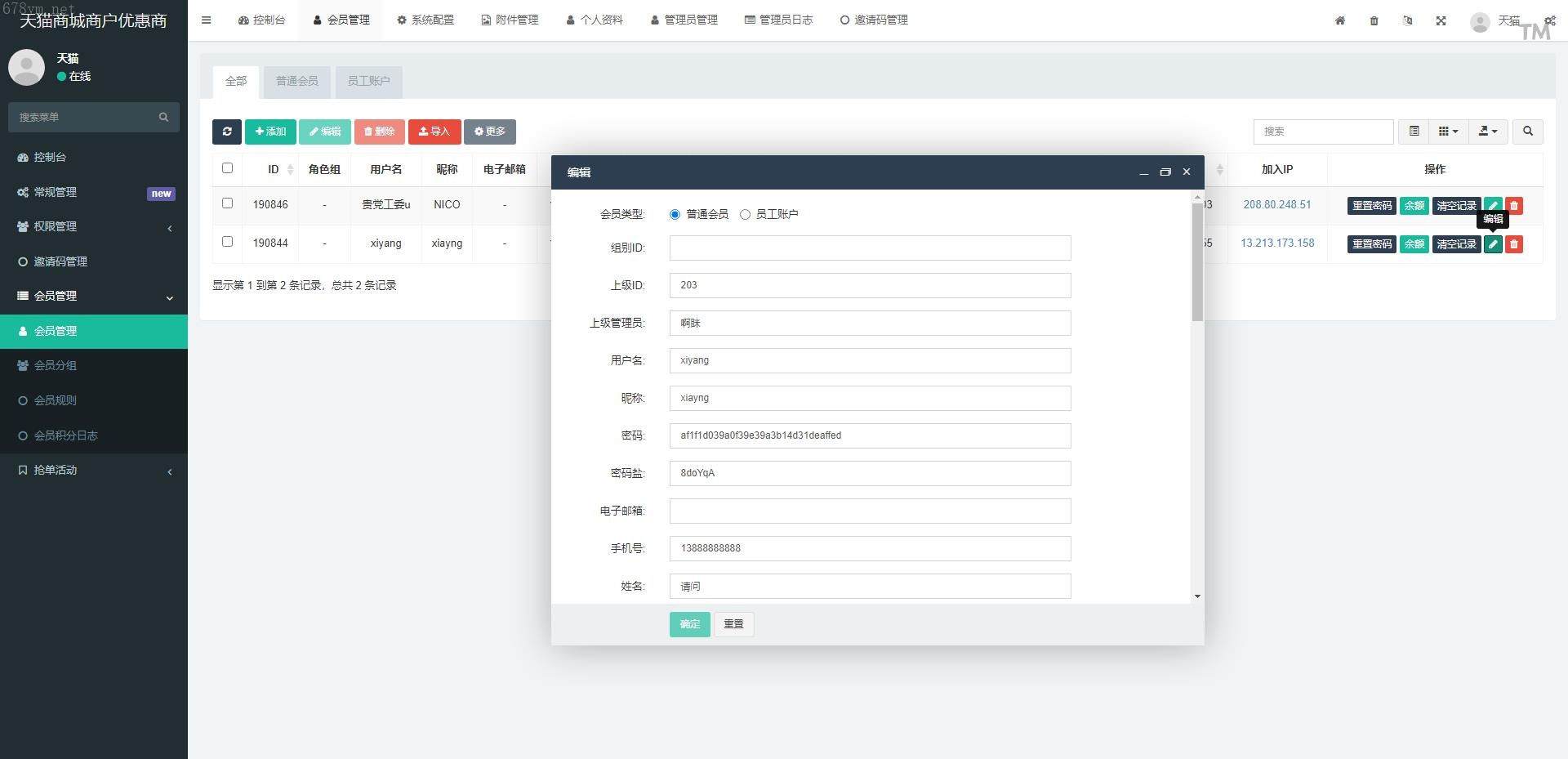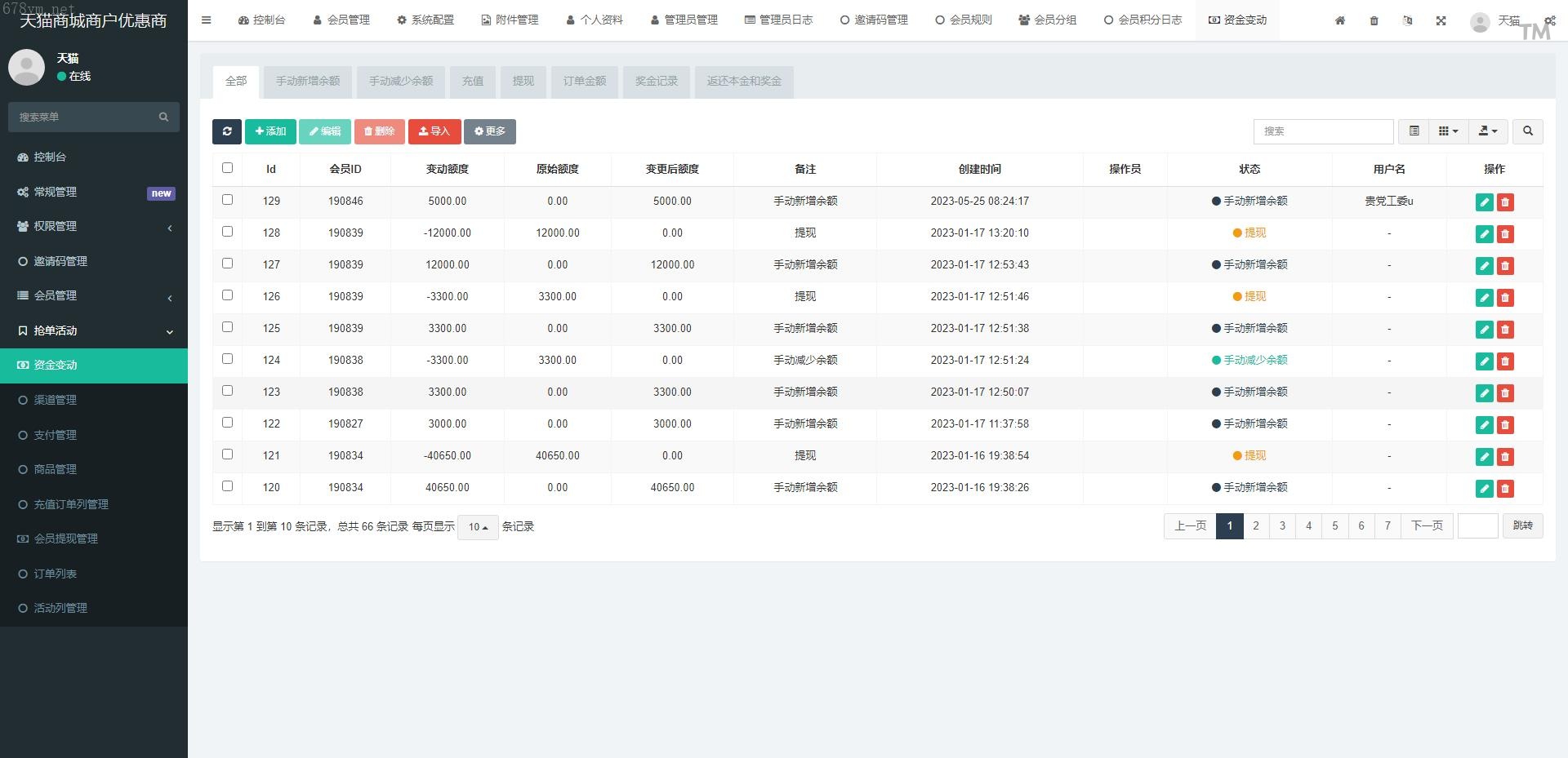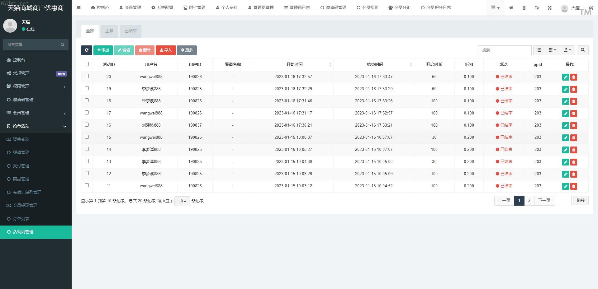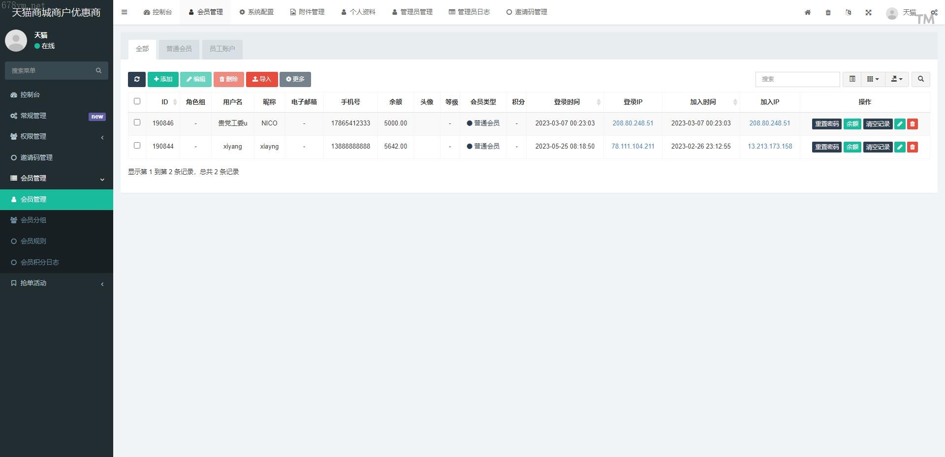 系统模式就是前端注册会员联系客户充值余额,后台添加单独会员的活动