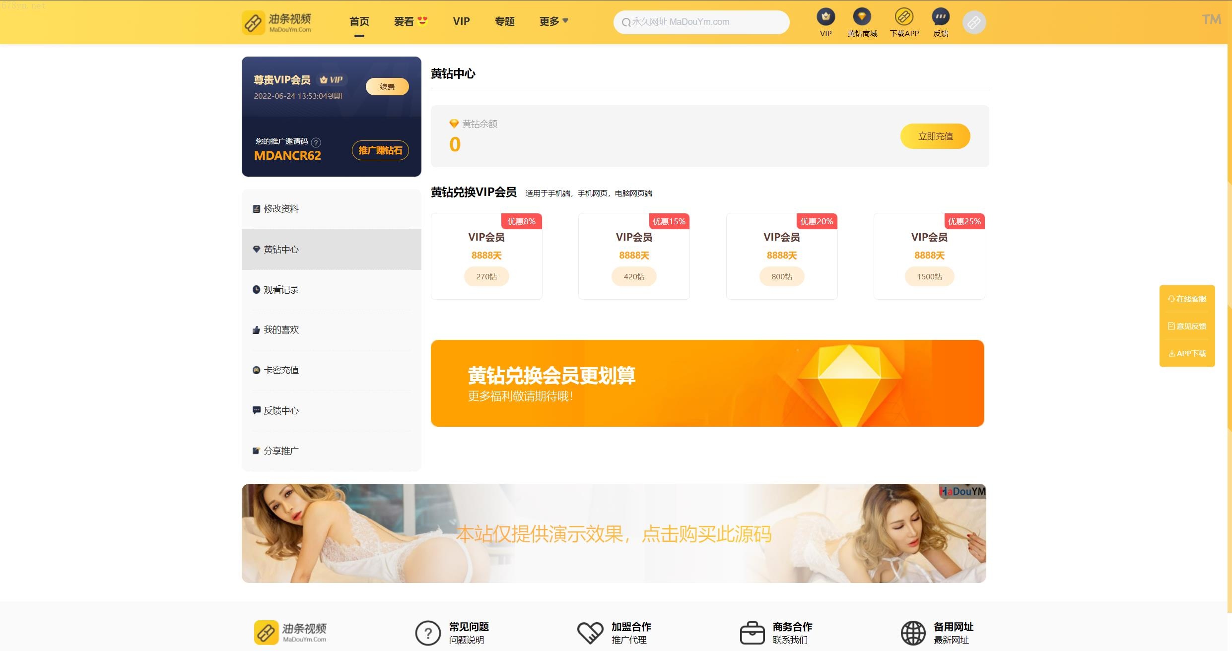 7. VIP视频以及积分付费视频独有标识,积分付费模式,设置视频积分后不管是不是会员都要求积分付费才能观看