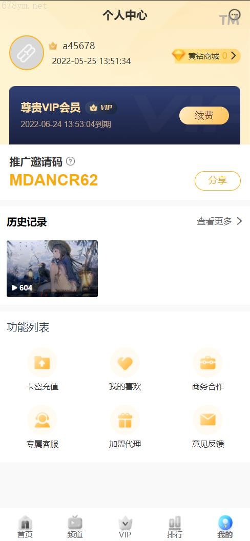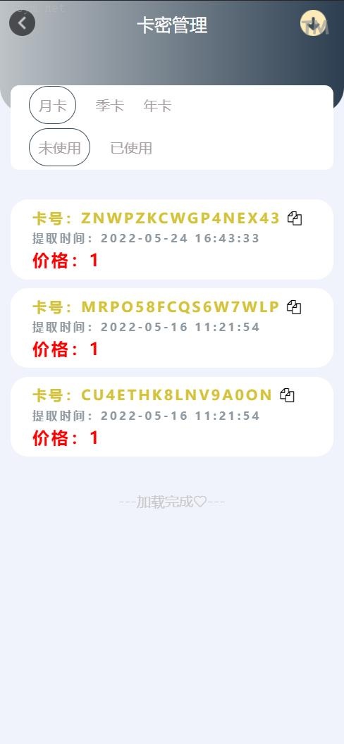 5.代理后台可以查看生成的卡密,并且能搜索卡密查询会员信息