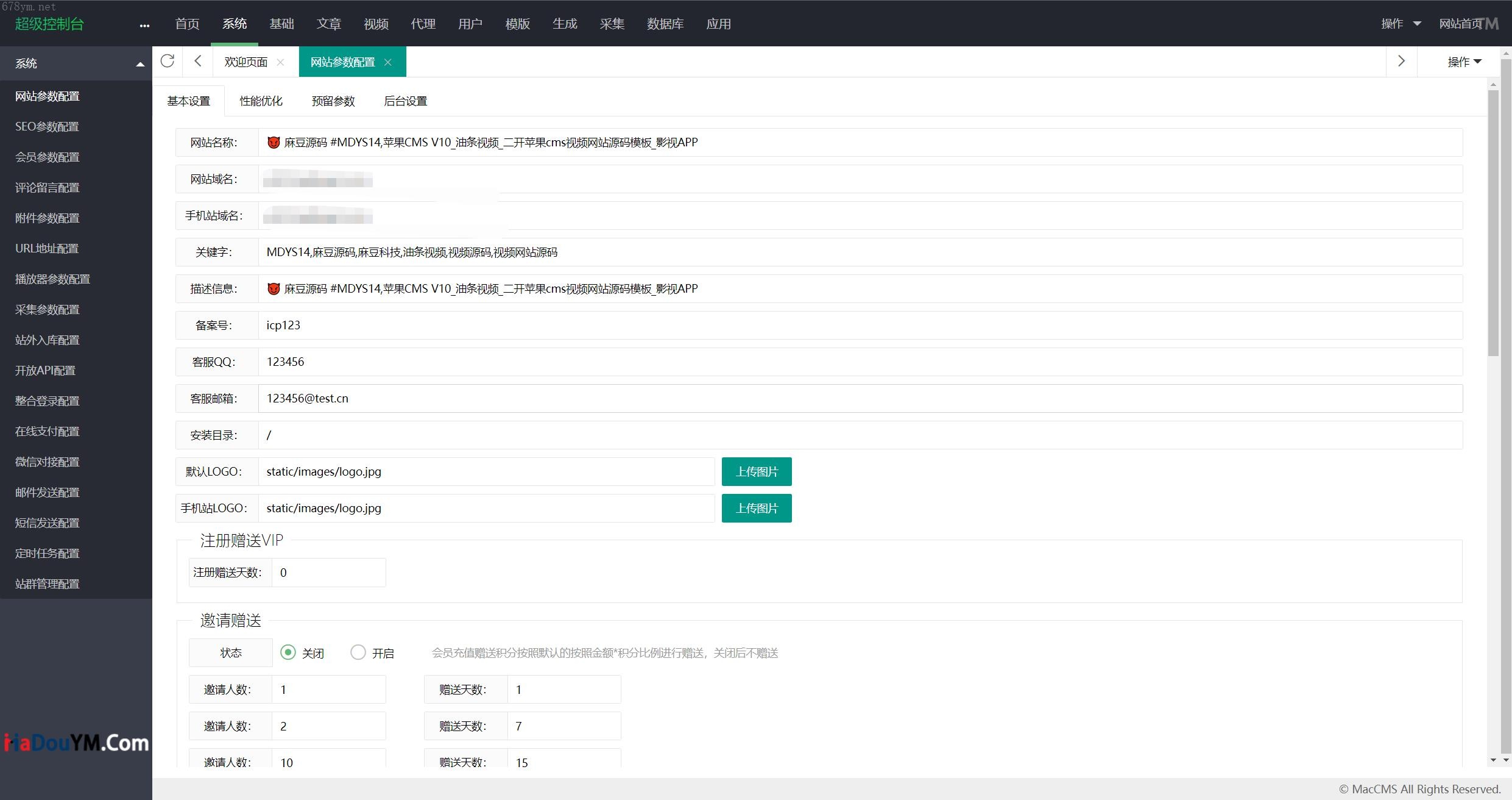 4.每个代理都可以在后台设置前台会员注册邀请码(6位数字)、代理的联系方式、并且可以设置发卡链接。