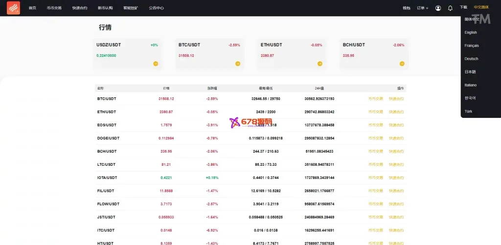 多语种区块链交易所/币币交易/区块链矿机系统/区块链,大概就是以前的矿机系统全新二开的,相当于整个系统的前端全部改变了,这款交易所功能完好,ui也不错,具体看下图。 交易所, 币币交易, 微交易, 矿机 原文链接:https://8zkj.me/Google.Translate.373,转载请注明出处。 0 交易所币币交易微交易矿机