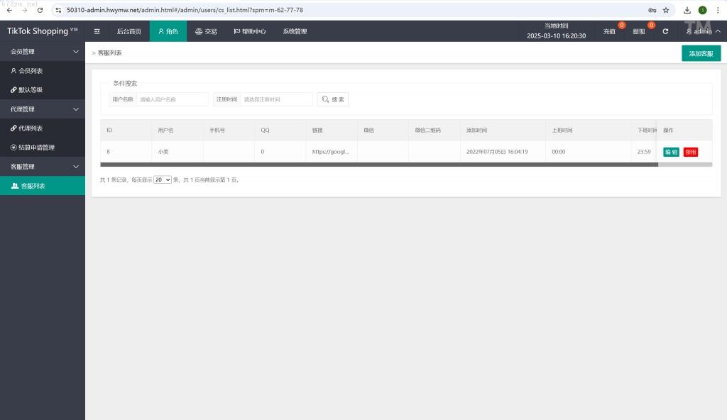客服(每个代理有自己的客服,客户属于哪个代理,前台展示这个代理的客服链接)