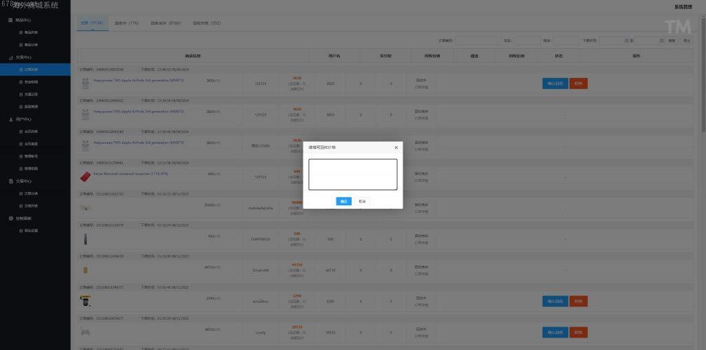 用户订单提交回收_后台订单自定义输入回收价格,非常完善.