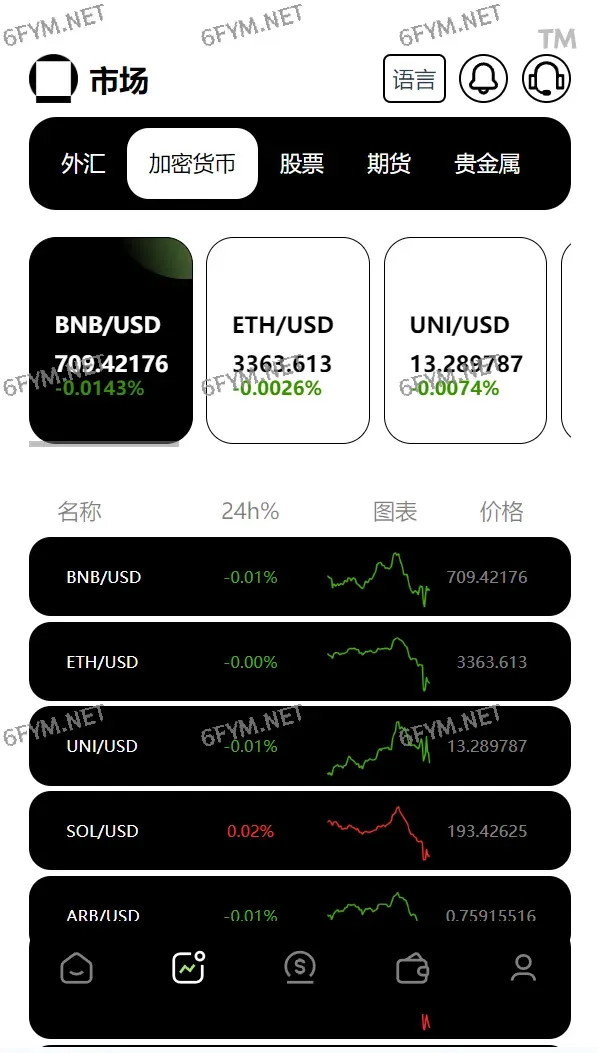 接口为第三方:mifeng以及付费接口一个月费用大概300U左右,否则k线无法使用
