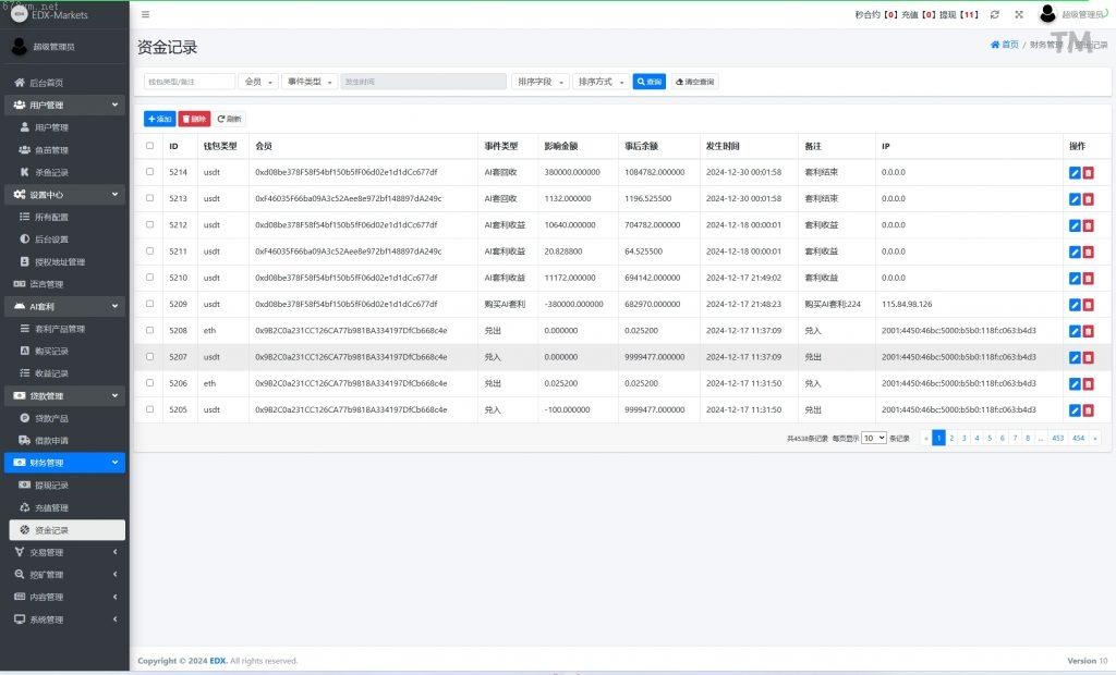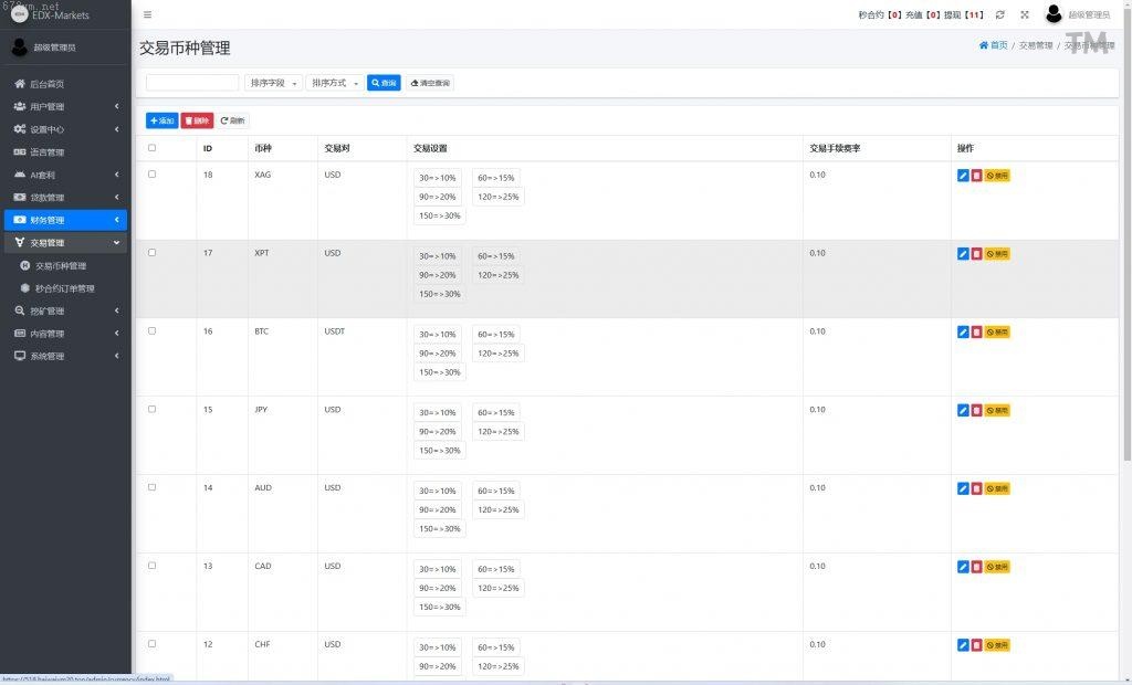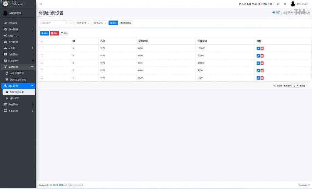 系统功能:秒合约交易、套利、矿机、借贷_功能