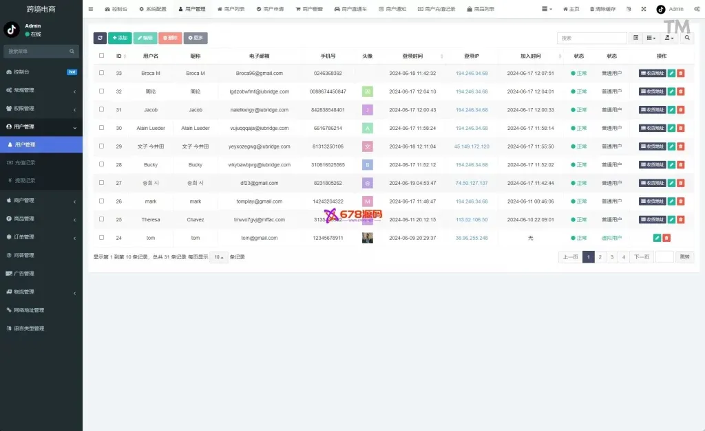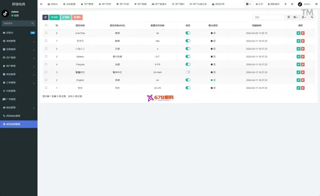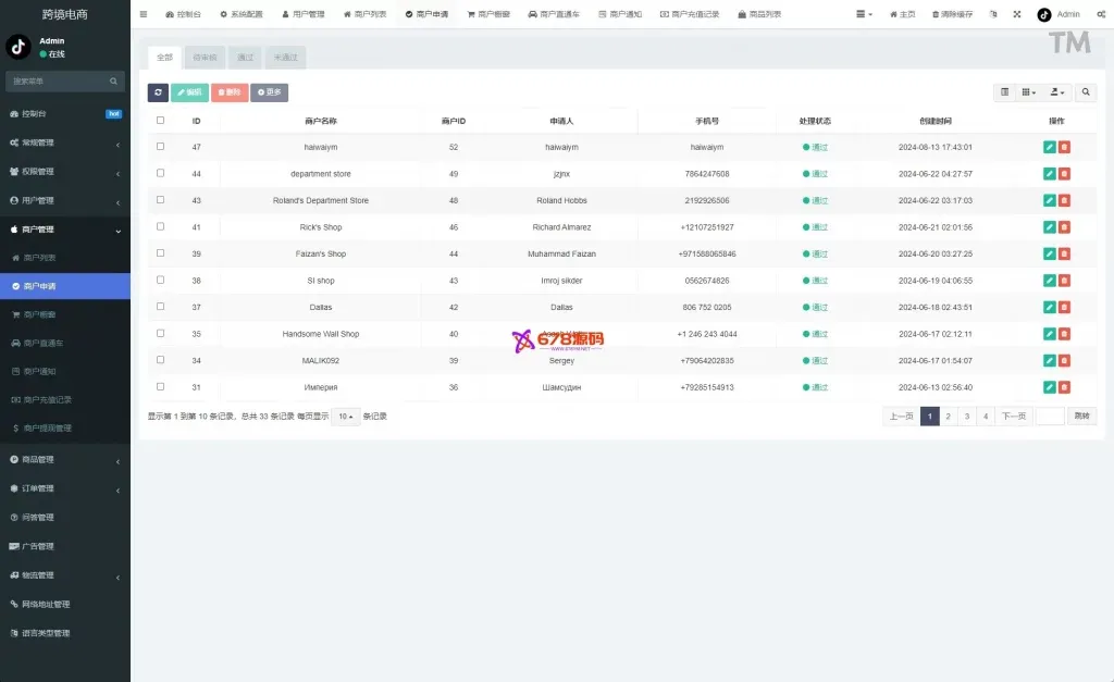 Tk跨境商城系统/多语种tiktok商城/内置客服/内嵌tiktok/非常流畅,PHP版tiktok商城系统,商户端vue,手机端vue,