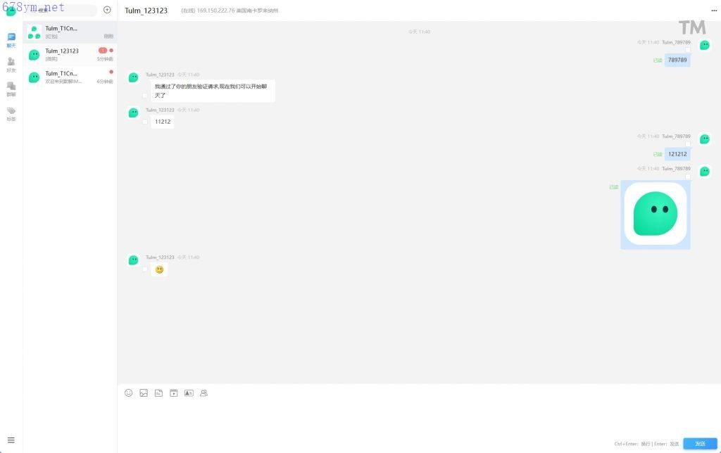 支持文字、表情、图片、语音、单聊、群聊、在线离线、撤回、已读未读、红包、消息群发、消息转发、内嵌外链、敏感词等完备的IM功能。