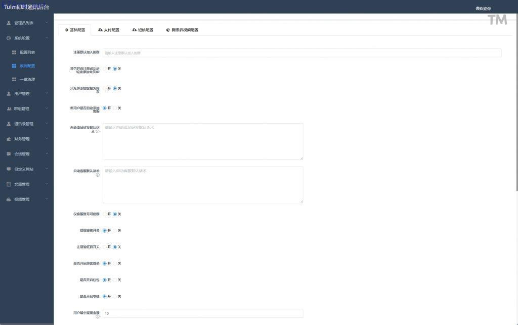 群聊:快速实现群组聊天,单人禁言、全员禁言、群红包、设置管理员、踢群成员等灵活的群组成员和权限管理。