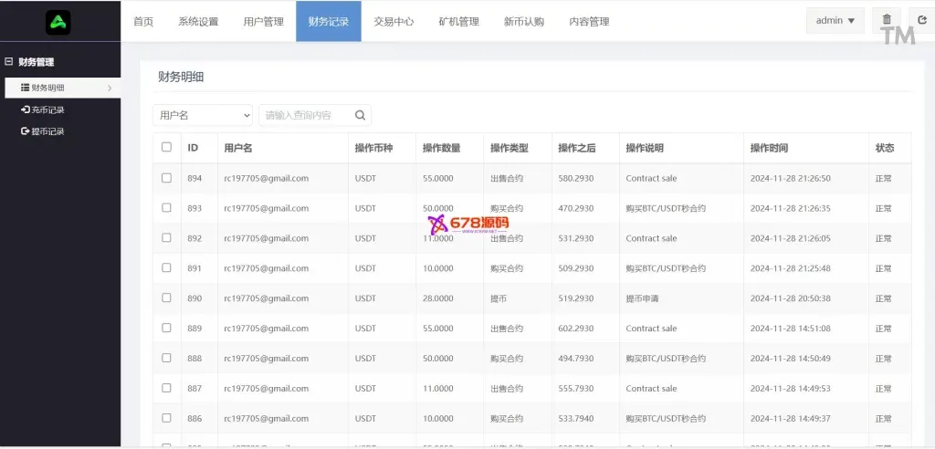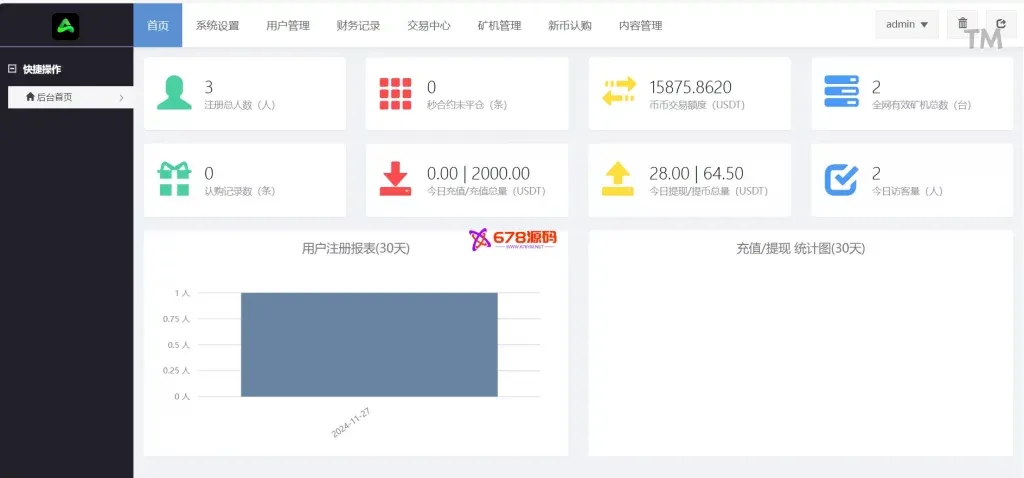交易所源码/交易所源码/K线正常/開源營運交易所/多次修复。 总后台:功能管理员在后台新增今日充值和今日提现统计后台新增了操作用户余额的功能,可以增加或扣除用户余额,增加会加到充值记录,和账变记录,减少则只在账变中体现,充值记录可以筛选是管理员充值还是用户自己充值的,新增了禁止用户交易开关,新增了指定用户必赢、必输、正常赔付模式。 php交易所, 交易所, 多语言交易所, 微交易, 秒合约 原文链接:https://8zkj.me/Google.Translate.562,转载请注明出处。 0 php交易所交易所多语言交易所微交易秒合约